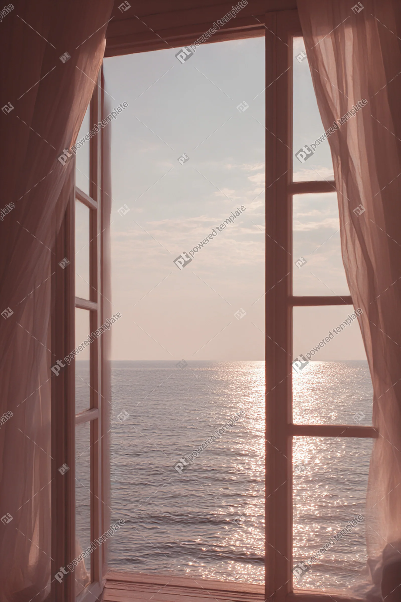 Pastel Ocean View From An Open Window | AI Image | PoweredTemplate ...