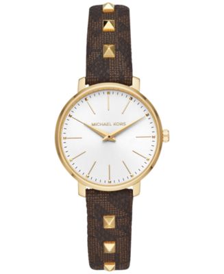 Michael Kors Women's Mini Pyper Brown Logo & Studs PVC Strap Watch 32mm ...