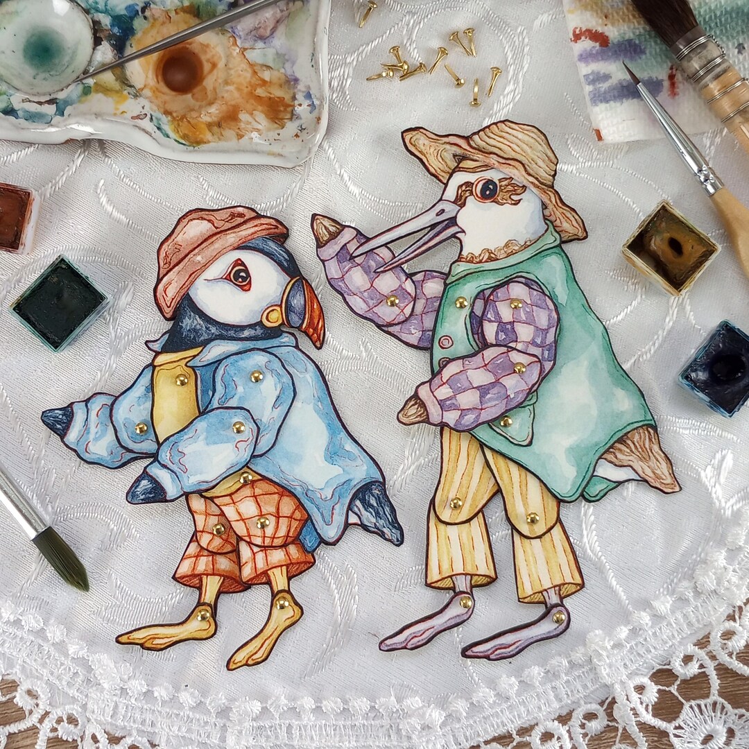 Watercolor Puffin & Piper Paper Dolls: Printable Articulated Shorebird ...
