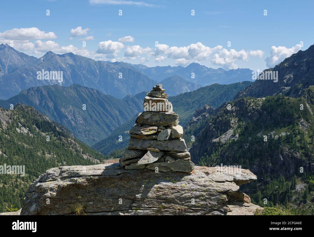 Stone pyramid marking hiking path in the mountains Stock Photo - Alamy