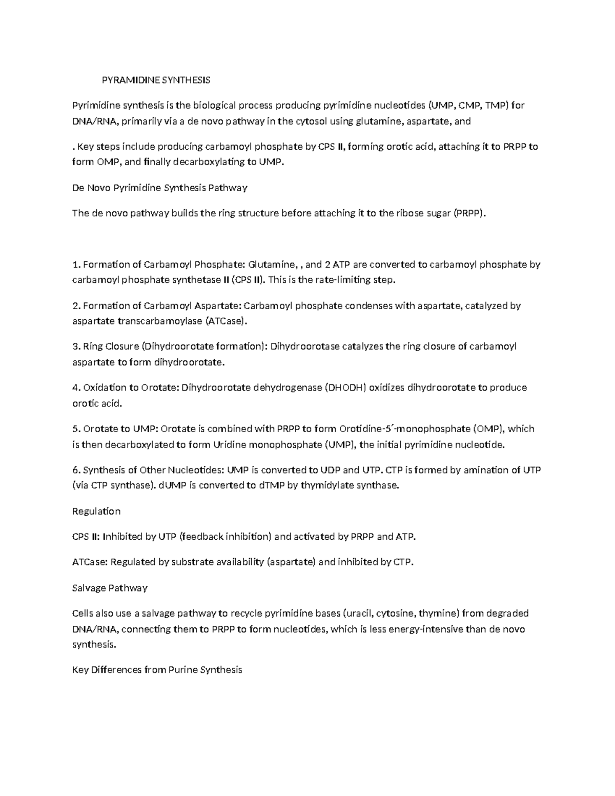 PYRAMIDINE SYNTHESIS: Key Steps and Pathways (SYNT-WPS) - Studocu