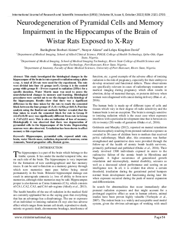 (PDF) Neurodegeneration of Pyramidal Cells and Memory Impairment in the ...