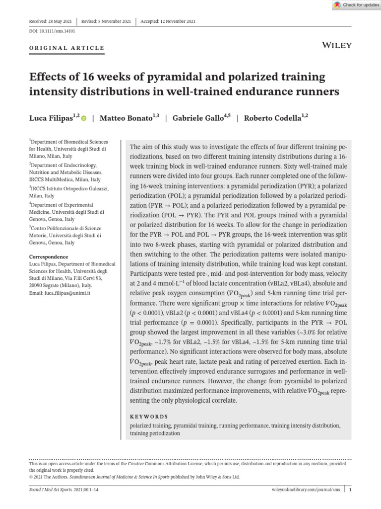 Effects of 16 Weeks of Pyramidal and Polarized | PDF | Effect Size ...
