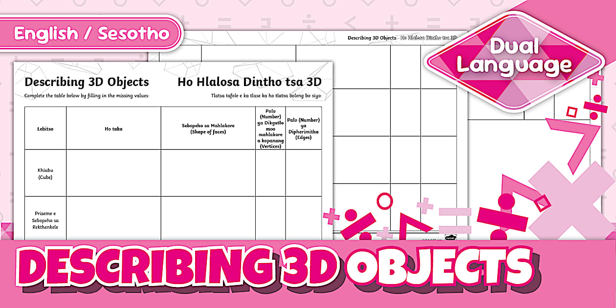 Grade 7 Maths - Term 3 - Match the 3D Object Nets - Sesotho