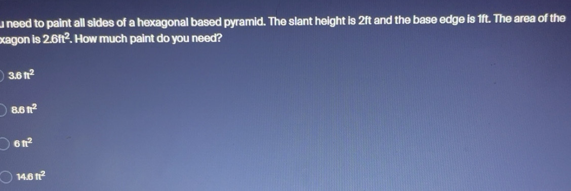 Solved: need to paint all sides of a hexagonal based pyramid. The slant ...