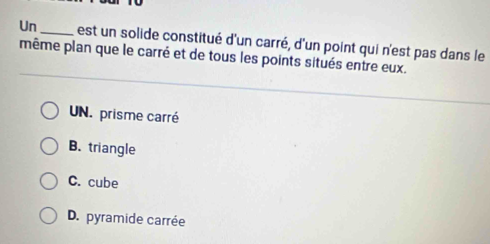 Solved: Un _est un solide constitué d'un carré, d'un point qui n'est ...