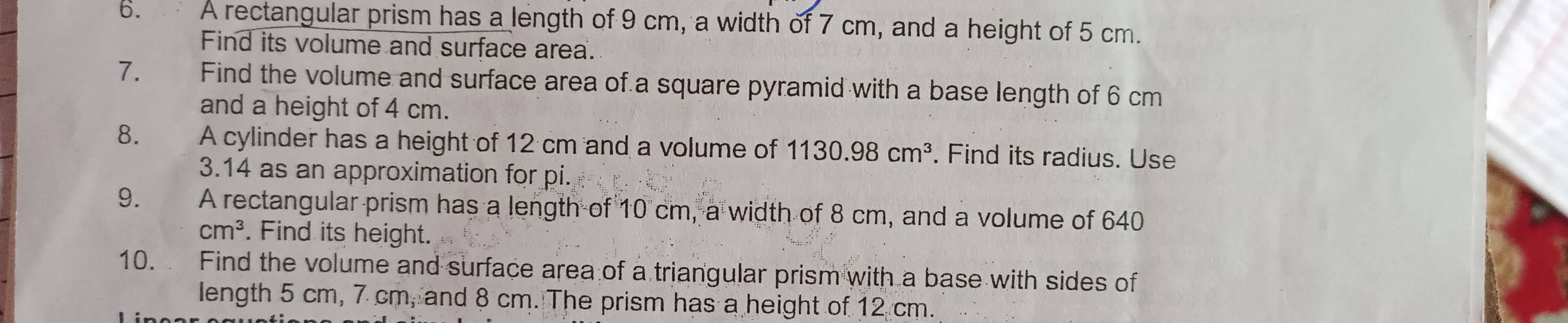 Solved: A rectangular prism has a length of 9 cm, a width of 7 cm, and ...