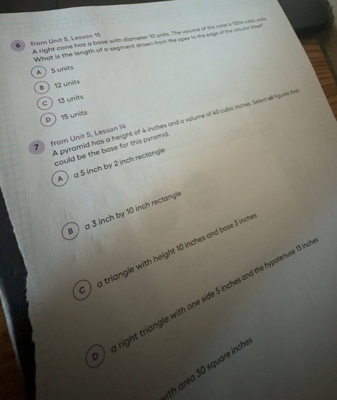Solved: A right cone has a base with diameter 10 units. The volume of ...