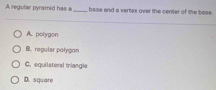 Solved: A regular pyramid has a_ base and a vertex over the center of ...