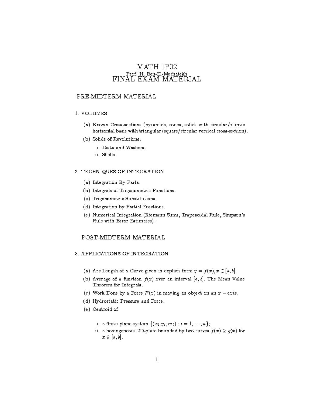 MATH 1P02 Final Exam Material - Studocu