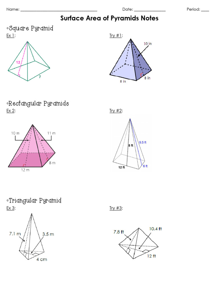 Surface Area and Volume of Pyramids Guided Notes Homework Warm Ups Exit ...