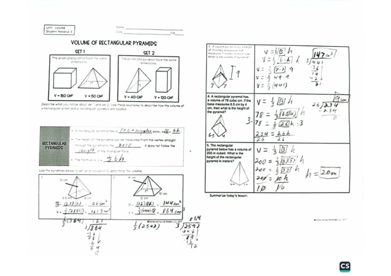 Volume - Pyramid Notes worksheet | Live Worksheets