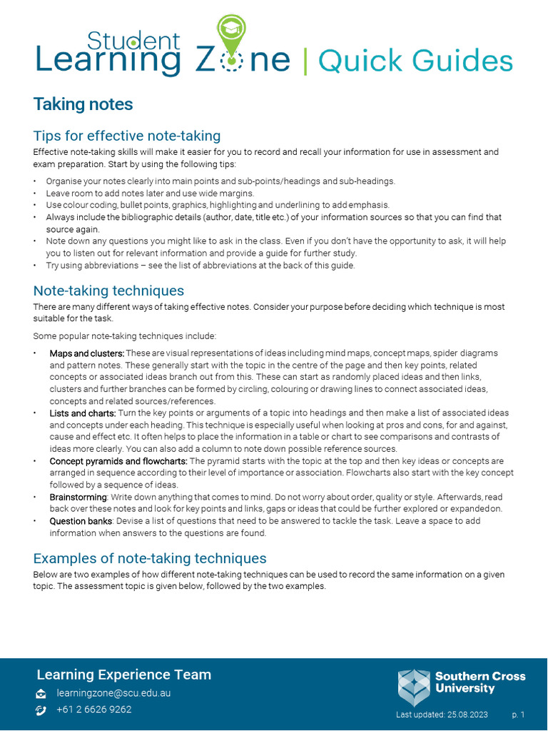 SOLUTION: Lecture notes understanding effective note taking techniques ...