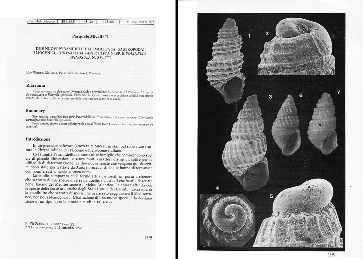 Due nuovi Pyramidellidae pliocenici: Chrysallida varisculpta n sp e ...