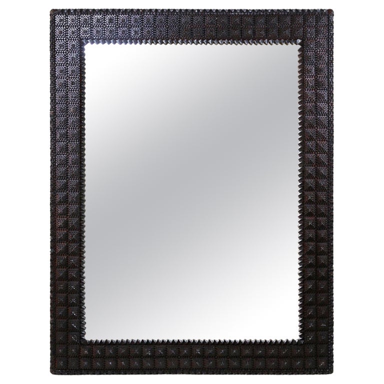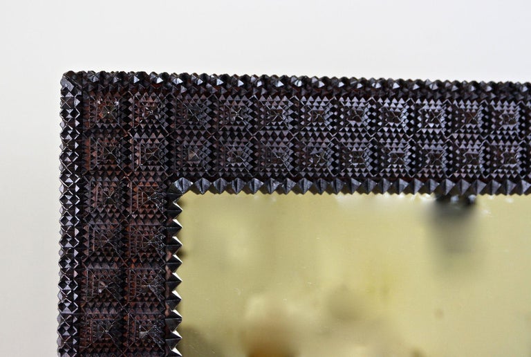 Tramp Art Rustic Wall Mirror with Pyramid Chip Carvings, Austria circa ...