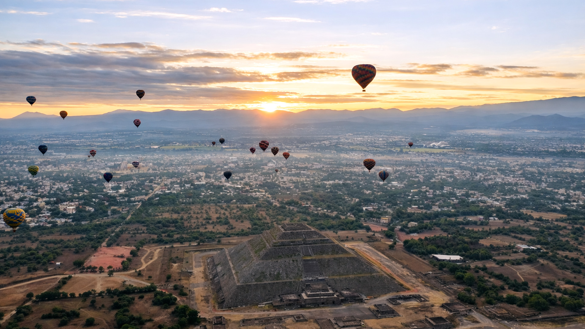 Sunrise over the Teotihuacán pyramids in Mexico
