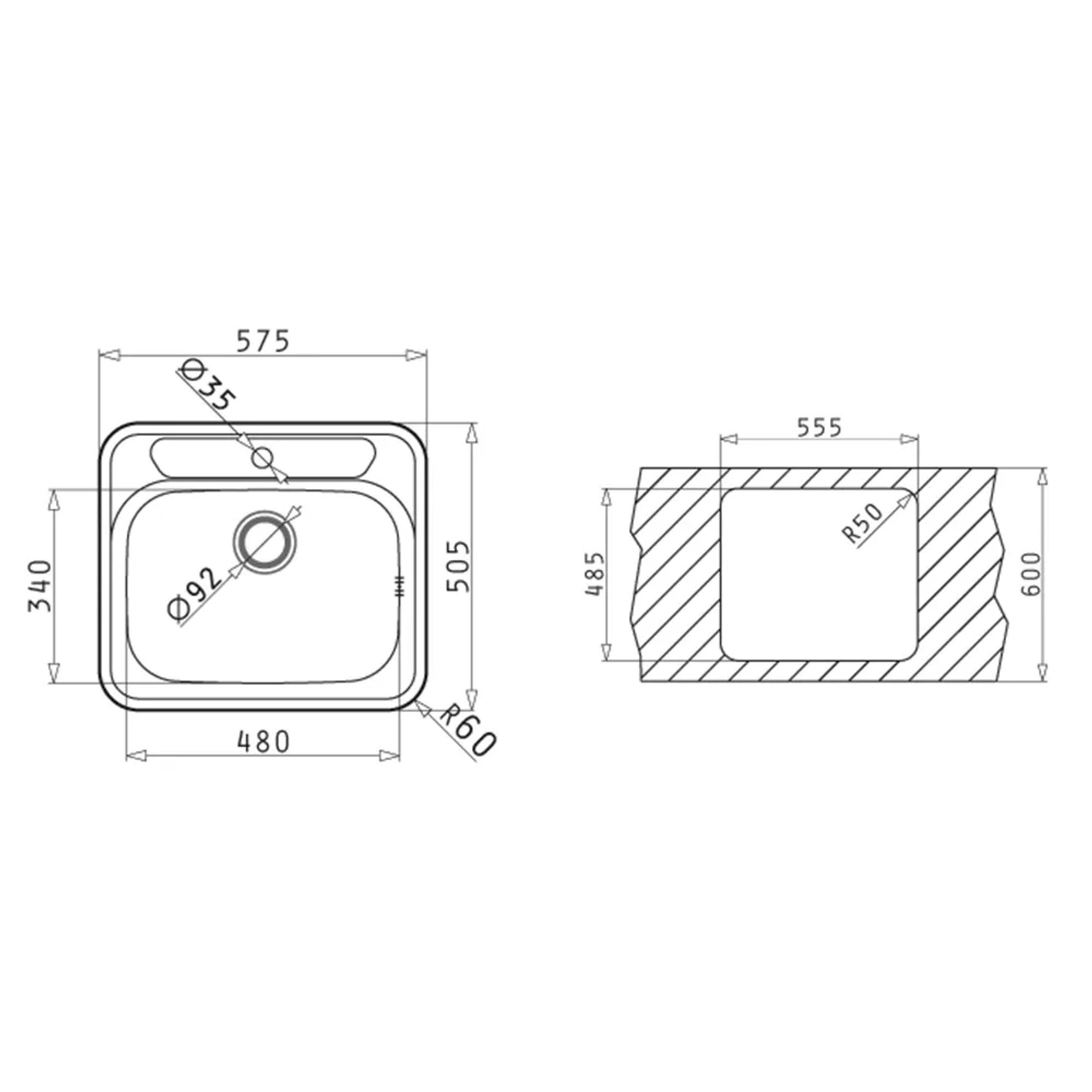 Мивка алпака за кухня 57.5 x 50.5см, ф92 мм Atria PYRAMIS ⋆ MASTERHAUS