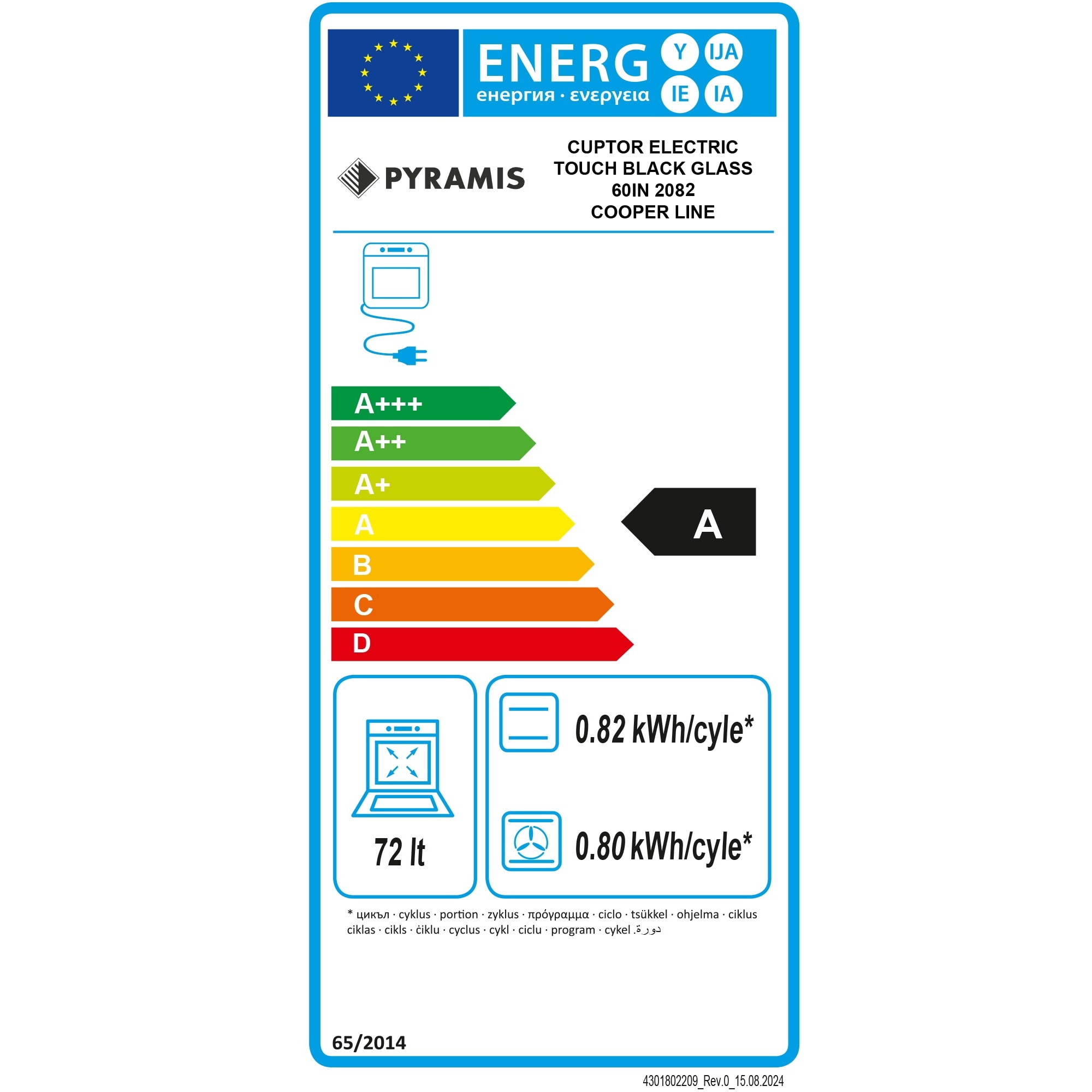 Cuptor electric Pyramis 60IN 2082 Copper Line Full Touch Black Glass ...