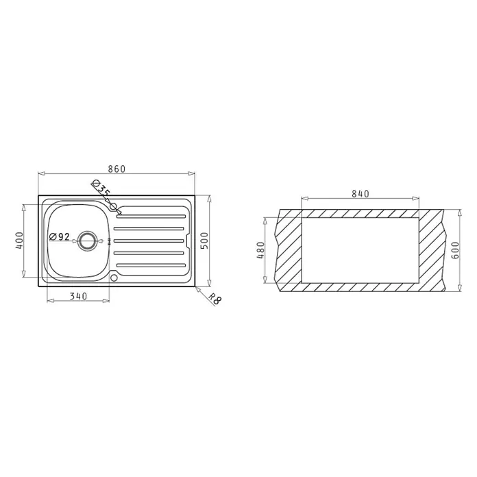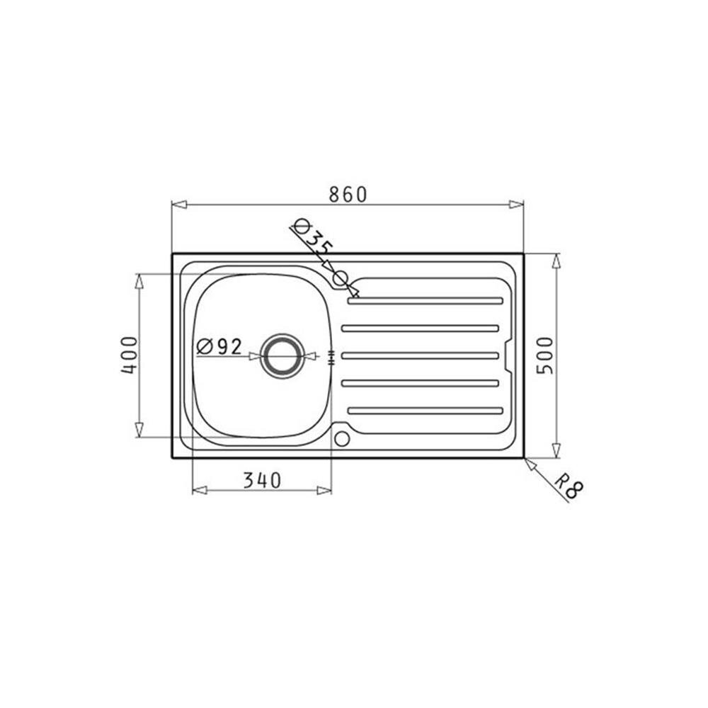 EVIER PYRAMIS INOX VERA 86X50 1 BAC 1 EGOUTOIR GAUCHE Ø 90 - Conquete