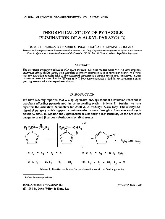 (PDF) Theoretical study of pyrazole elimination ofN-alkyl pyrazoles