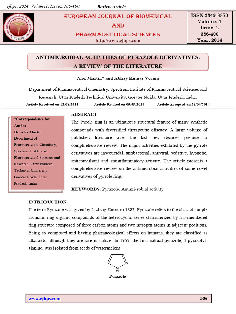 Anti Microbial Activities of Pyrazole de | PDF | Antimicrobial ...