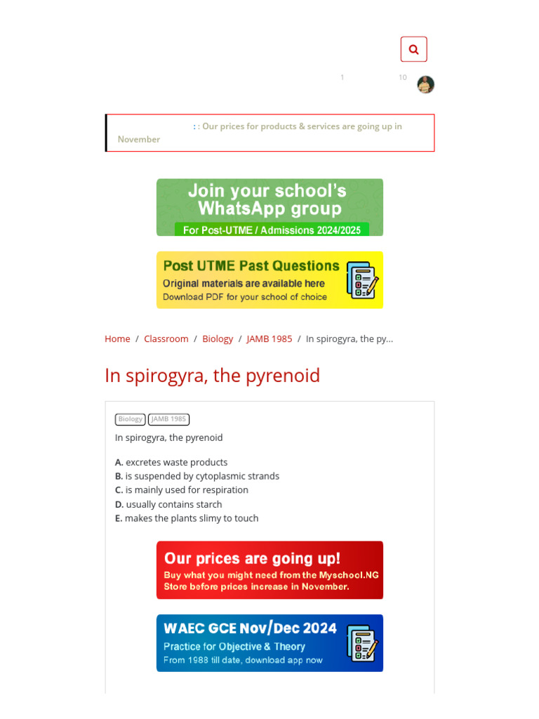 In Spirogyra, The Pyrenoid - Myschool | PDF | Career & Growth