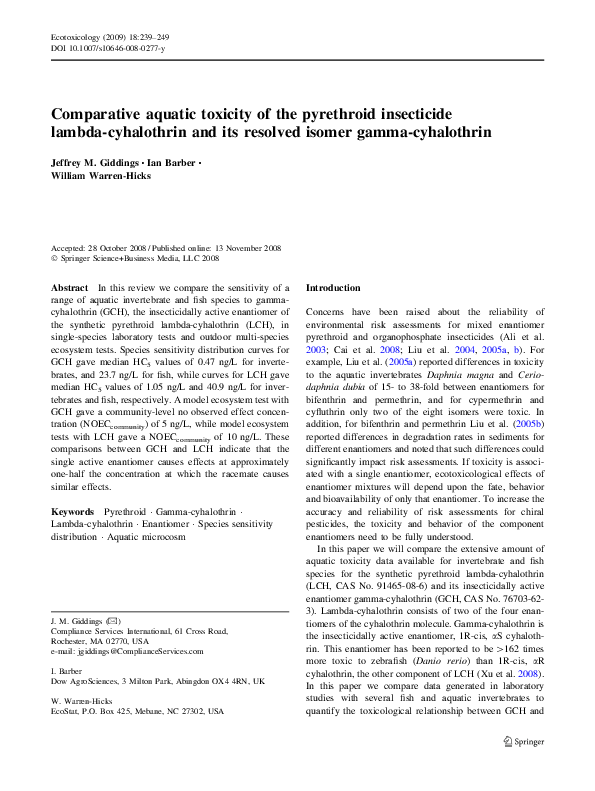 (PDF) Comparative aquatic toxicity of the pyrethroid insecticide lambda ...