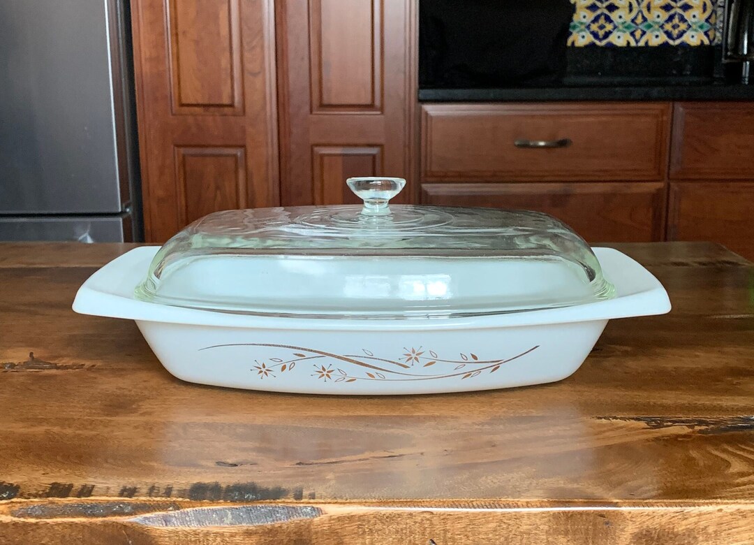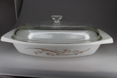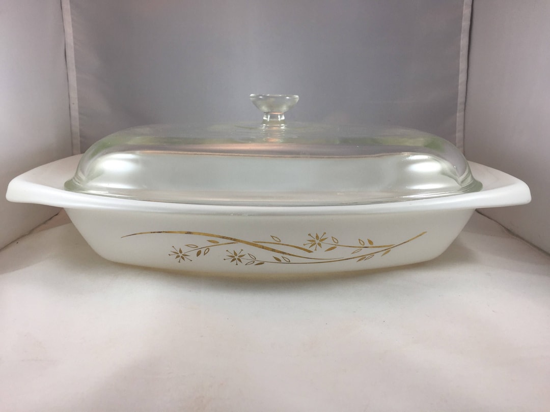 Vintage Pyrex Golden Honeysuckle Milk Glass Casserole Baking Dish 1 1/2 ...