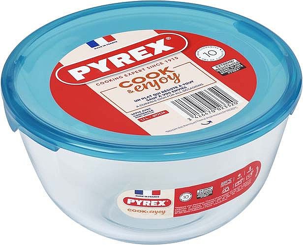 פשוט לבית | קערת פיירקס עם מכסה 2.3 ליטר Pyrex | מטבח | ארגון ואחסון