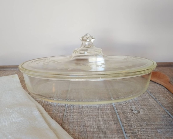 Pyrex 1940s Glass Casserole Dish with Etched Floral Pattern | Etsy