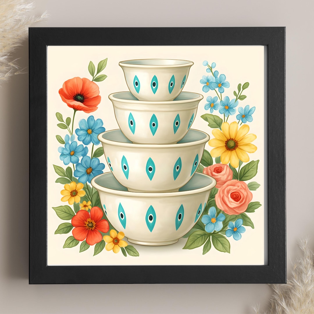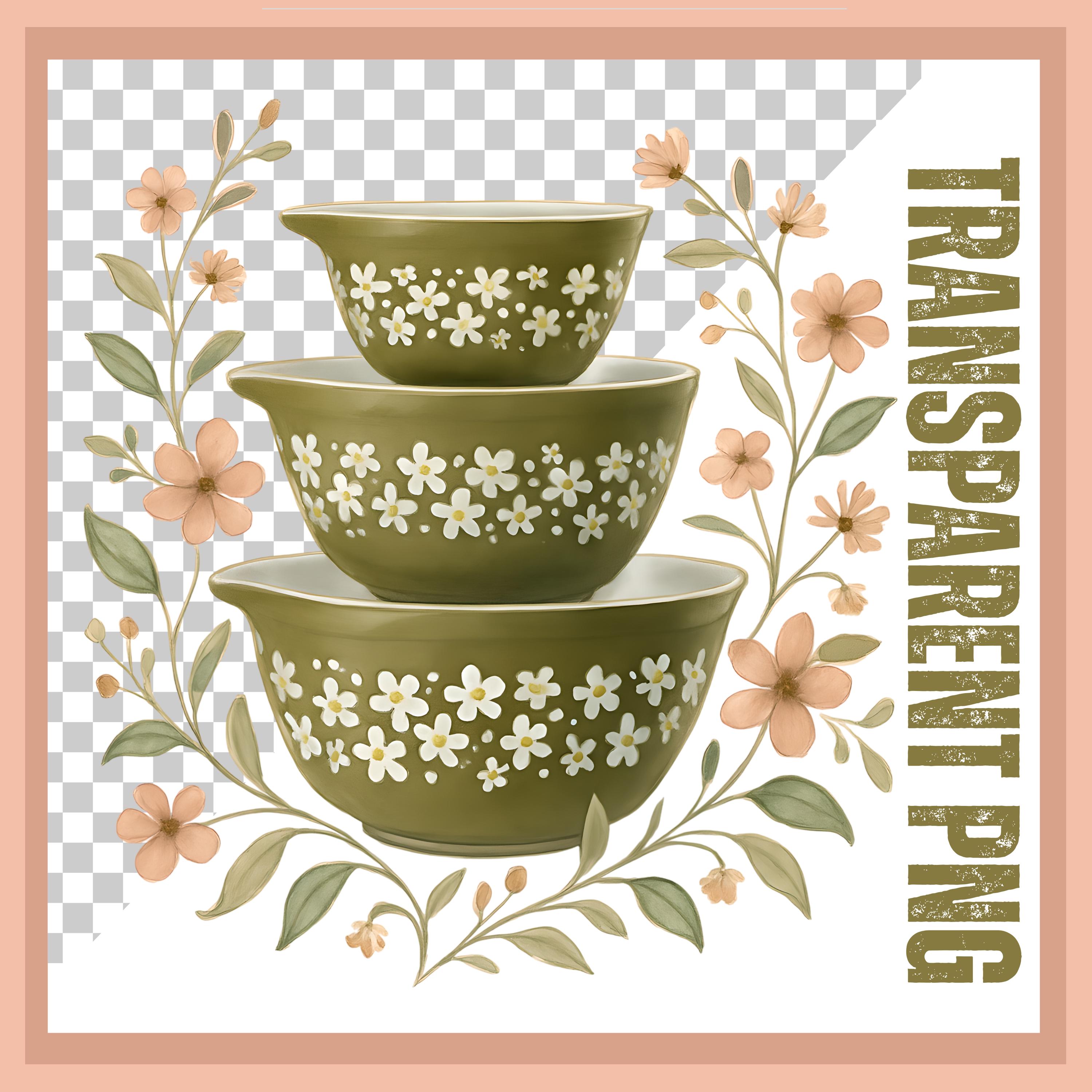 Vintage Pyrex Bowl Stacks Inspired & Florals PNG Clip Art Bundle ...