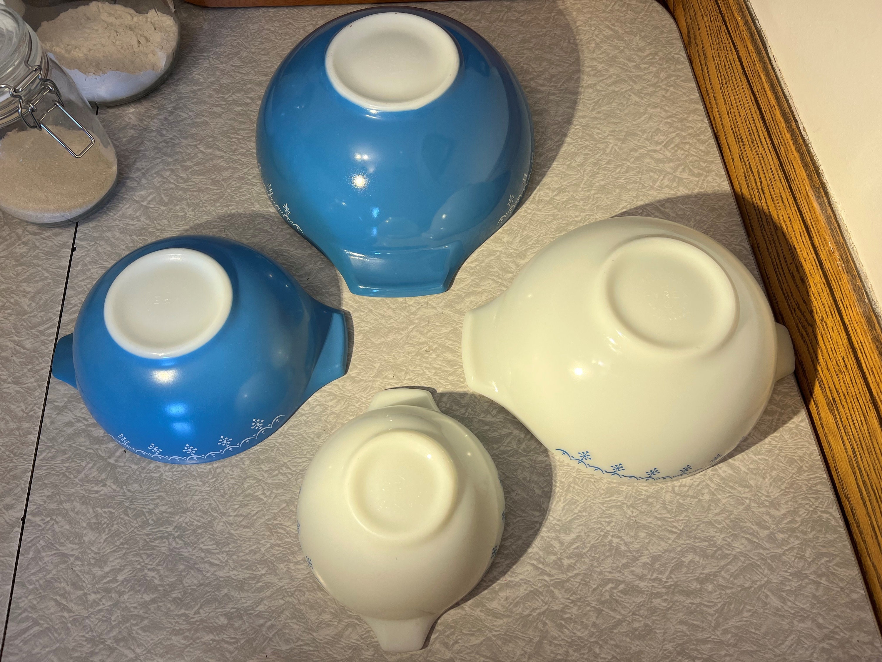 Vintage Pyrex Blue Snowflake Garland Set of 4 Cinderella Bowls ...