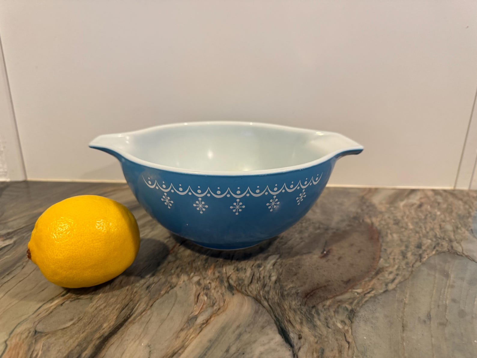 Vintage Pyrex Blue Snowflake Garland Cinderella Bowl 444 – Little Hippie