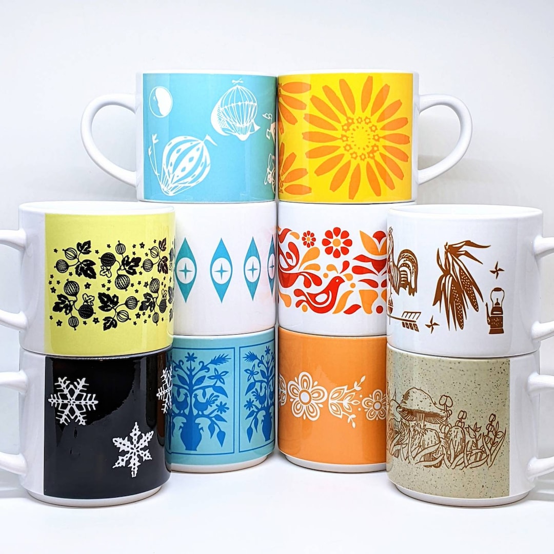 Pyrex Inspired Stackable Mugs - Etsy