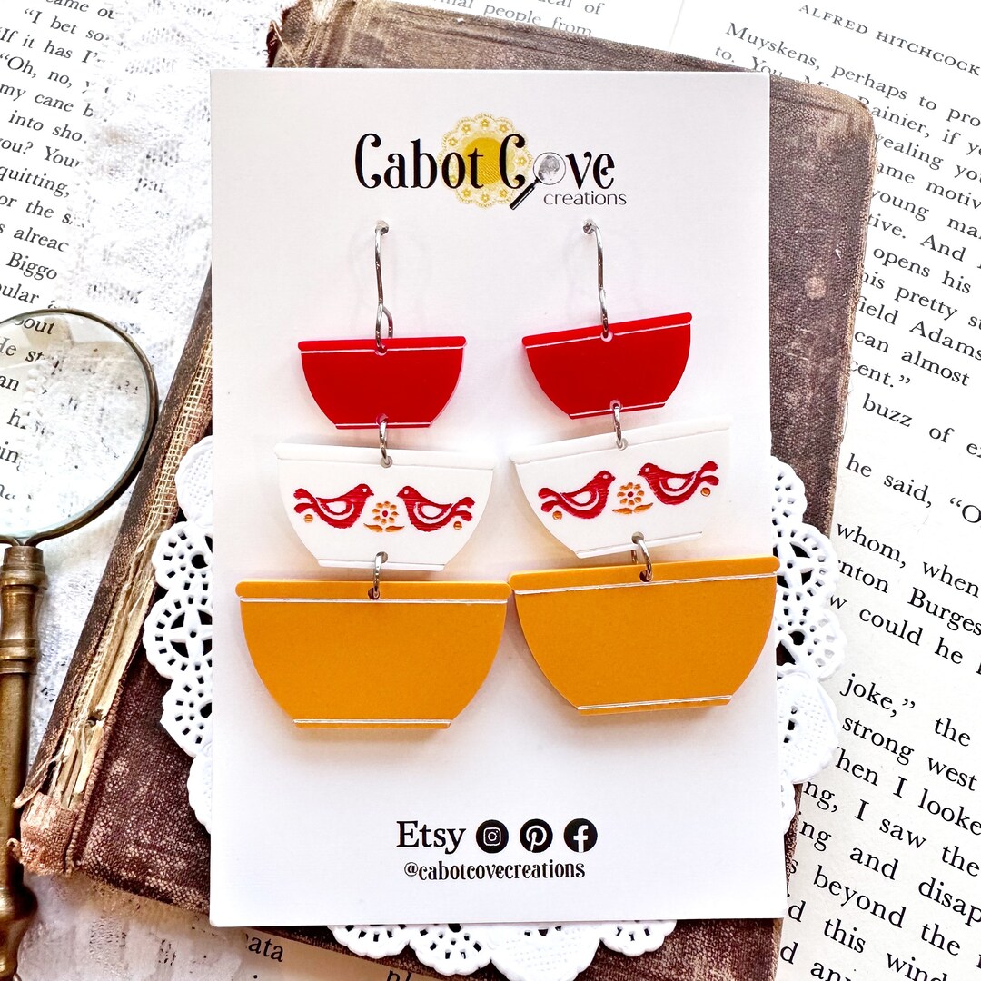 Pyrex Inspired Friendship Pattern Stacking Bowl Acrylic Earrings, Pyrex ...