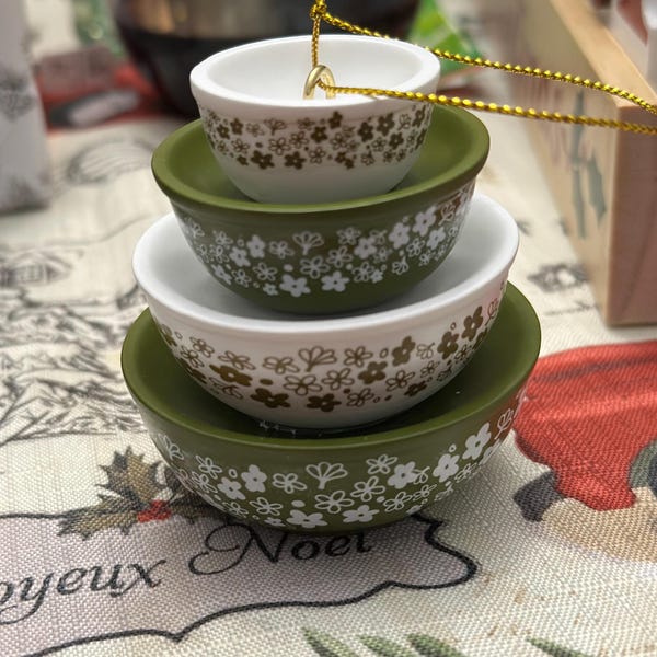 Pyrex-inspired Miniature Bowl Stack Ornament: Retro Kitchen Christmas ...