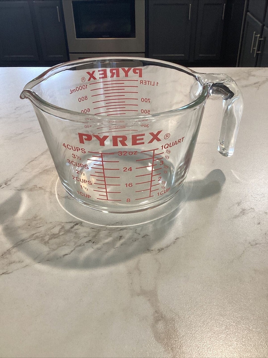 Vintage Pyrex Large Measuring Cup 4 Cup 32oz Red Letters Open Handle - Etsy