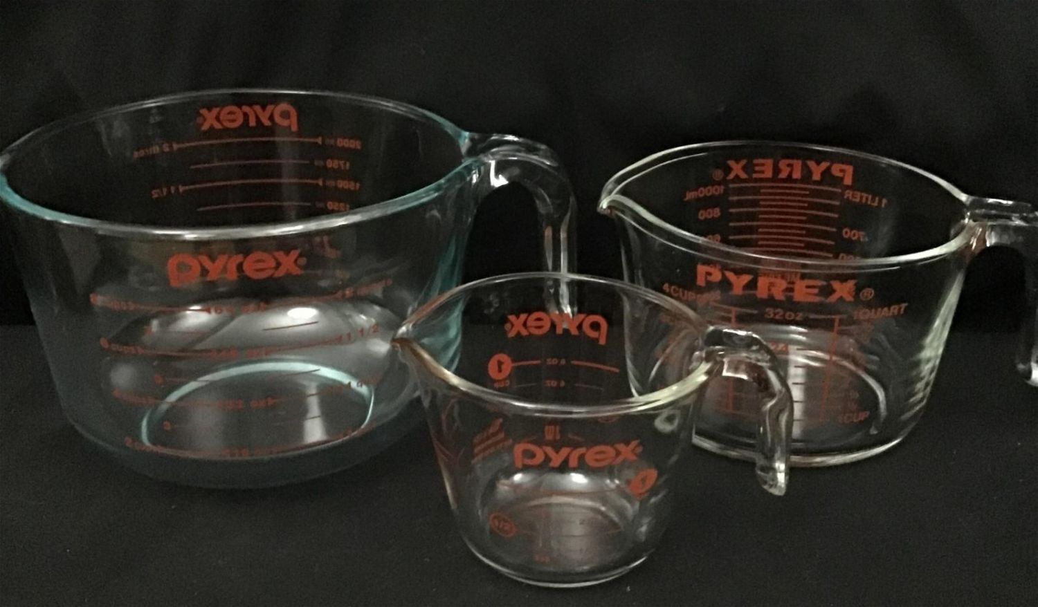 Vintage Pyrex glass measuring cups set of 3 | Maxsold