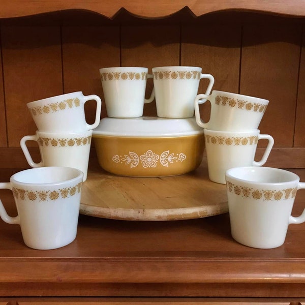 Vintage Set of 6 Pyrex Mugs in the Gold Butterfly Pattern - Etsy
