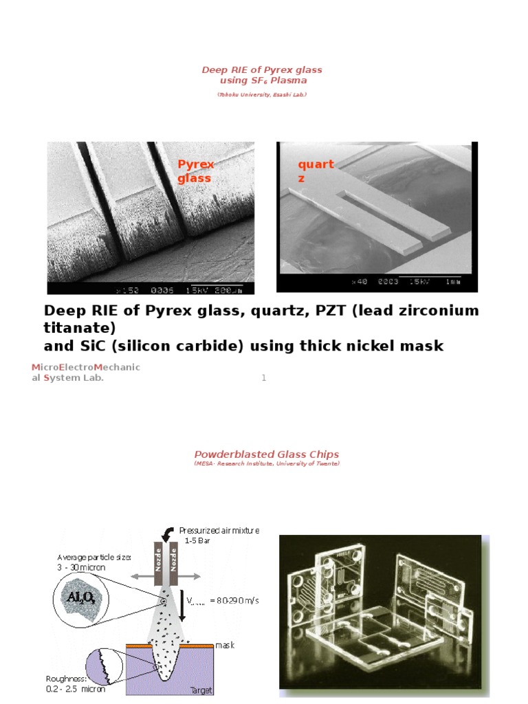 Deep Rie of Pyrex Glass, Quartz, PZT (Lead Zirconium Titanate) and Sic ...