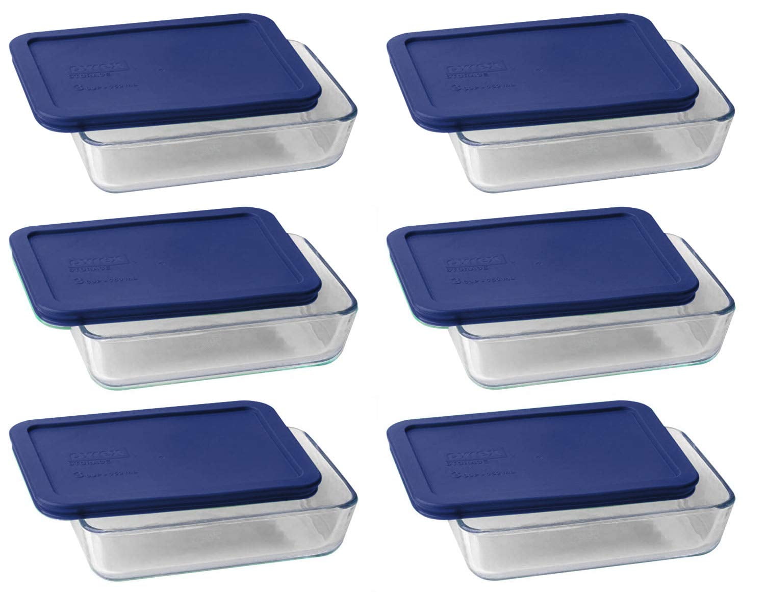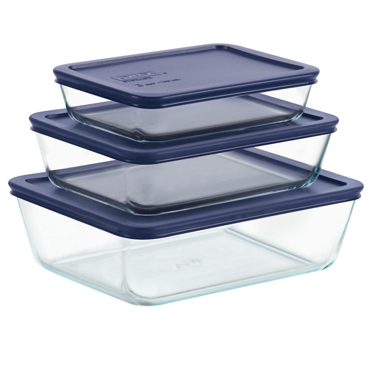 Pyrex Simply Store 6-Piece Rectangle Glass Storage Set with Blue Lids ...