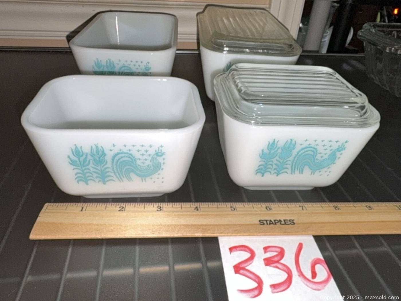 Pyrex Turquoise Rooster Butterprint Refrigerator Dishes 4+2 lids | Maxsold