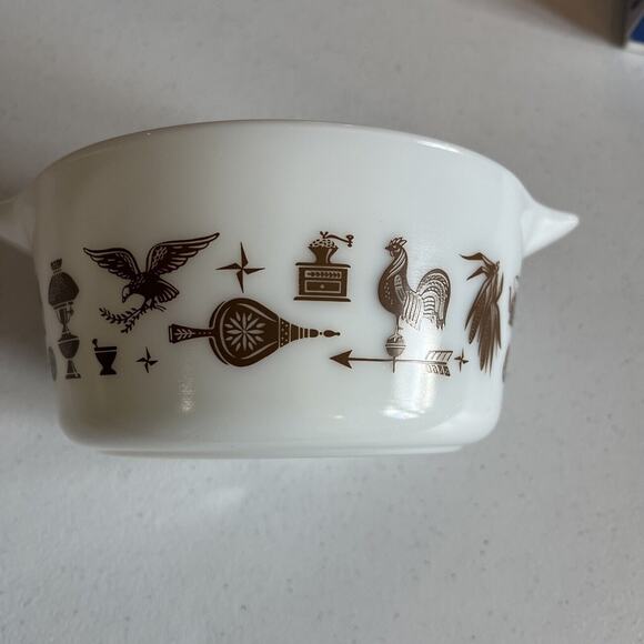 Early American Pyrex Casserole - 1 Qt Rooster Brown Americana- with Lid ...