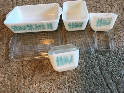 Pyrex Amish Butterprint Rooster Turquoise Refrigerator Dishes 501 with ...