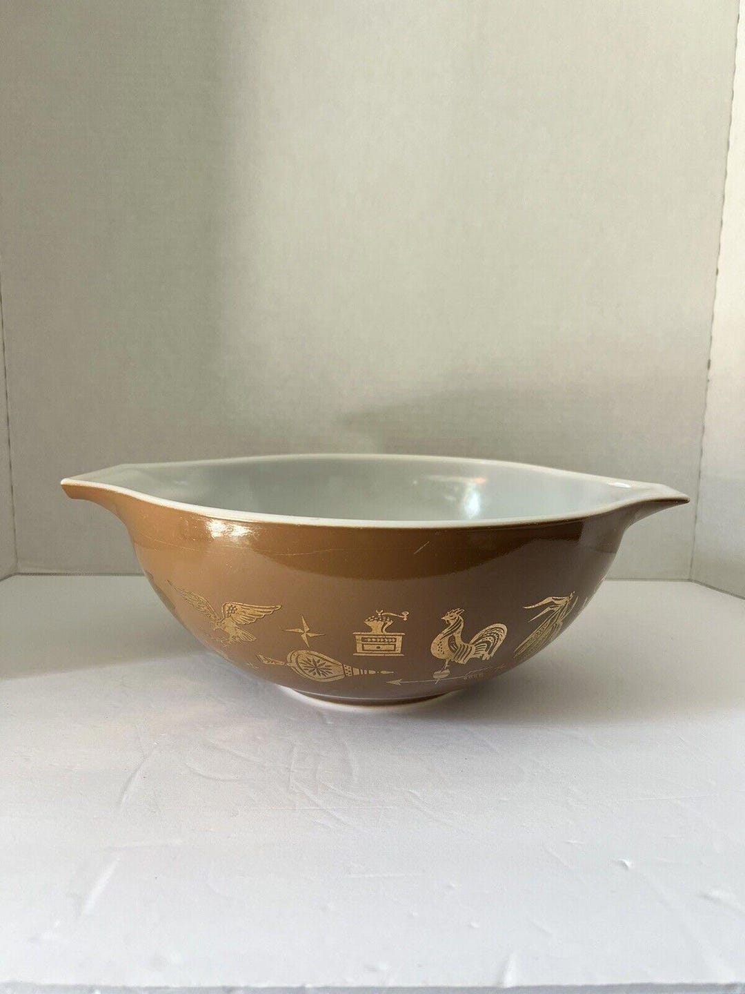 Vtg Pyrex American Heritage 1.5 Qt. Brown & Gold / Rooster Mixing Bowl ...