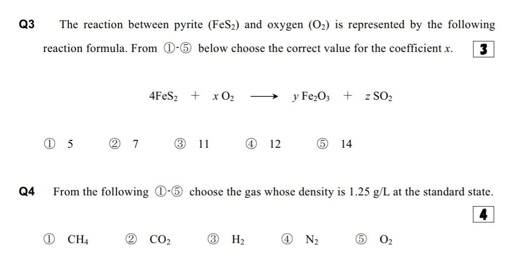 Solved Q3 The reaction between pyrite (FeS2) and oxygen (O2) | Chegg.com