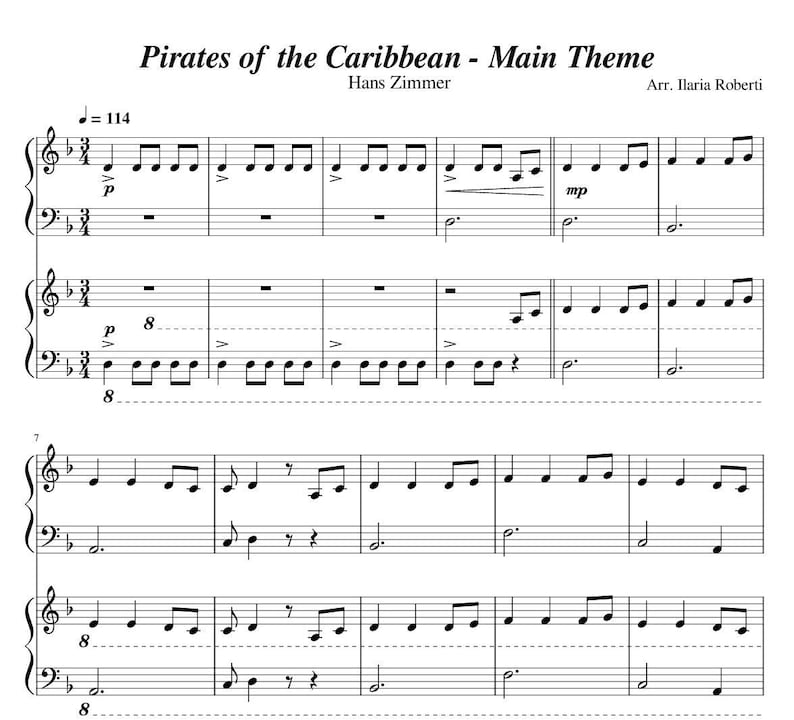 Pirates of the Caribbean Main Theme (hans Zimmer) Piano Sheet Music ...