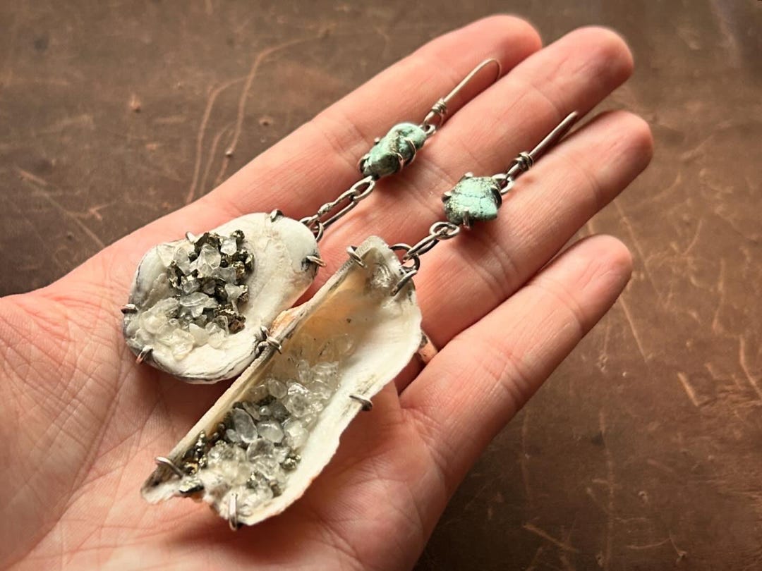 Oysters & Champagne | Seashells, Pyrite, Quartz, Turquoise and 925 ...