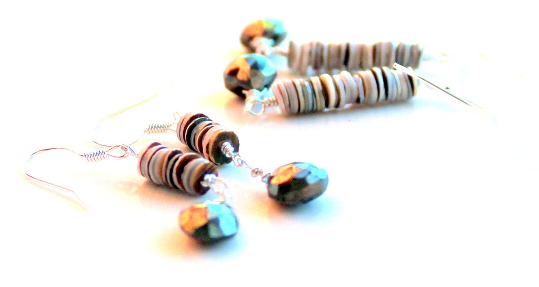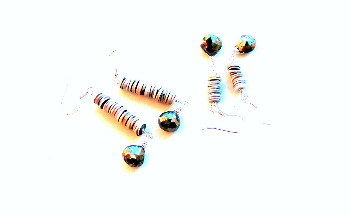 Long Seashell Pyrite Drop Earrings. Free Domestic Gift Shipping. Wire ...