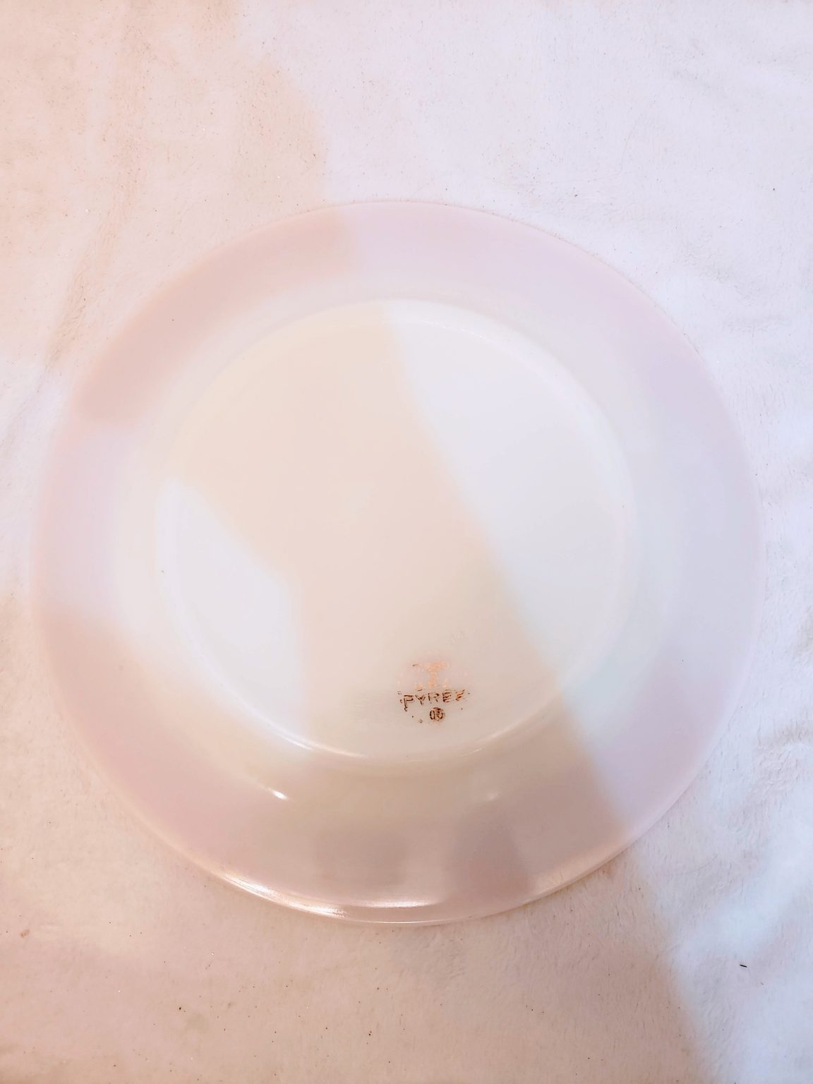 vintage Pyrex flamingo pink border milk glass dishes, retro red & white ...